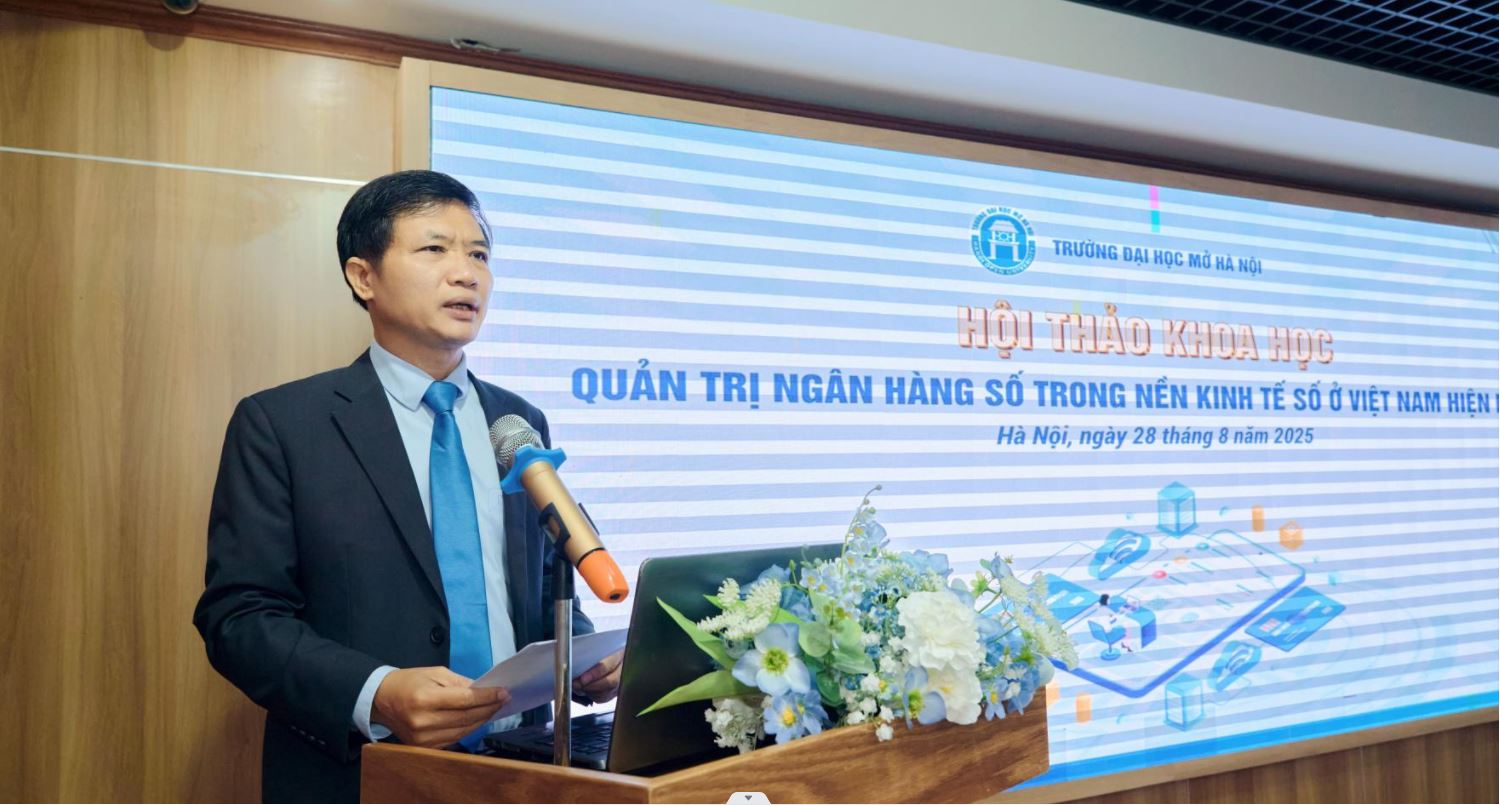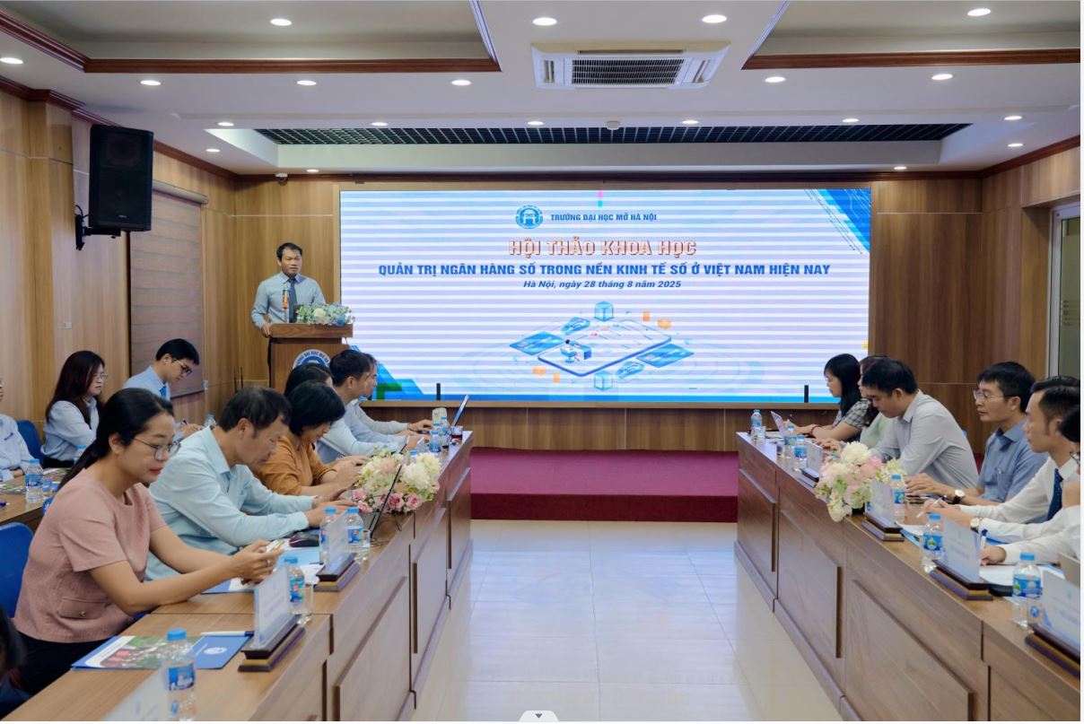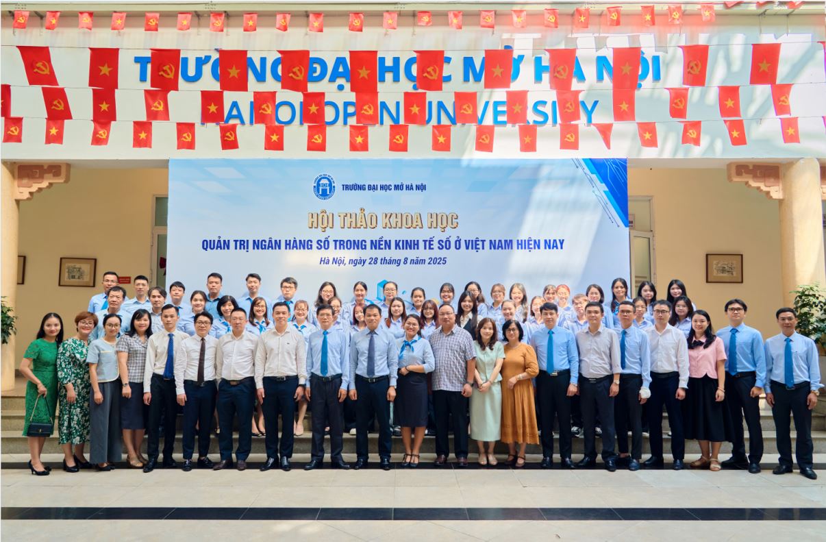 Trong bối cảnh chuyển đổi số đang diễn ra mạnh mẽ, ngành ngân hàng tại Việt Nam đứng trước yêu cầu cấp thiết phải đổi mới mô hình quản trị thích ứng với xu thế phát triển hiện đại. Nhằm tạo dựng một diễn đàn học thuật để các nhà nghiên cứu, chuyên gia và giảng viên trao đổi, chia sẻ kết quả nghiên cứu kinh nghiệm thực tiễn và thảo luận về các vấn đề liên quan đến quản trị ngân hàng số trong nền kinh tế số. Sáng nay, 28/08/2025 tại Trường Đại học Mở Hà Nội đã diễn ra Hội thảo “Quản trị ngân hàng số trong chuyển đổi nền kinh tế số ở Việt Nam hiện nay”.