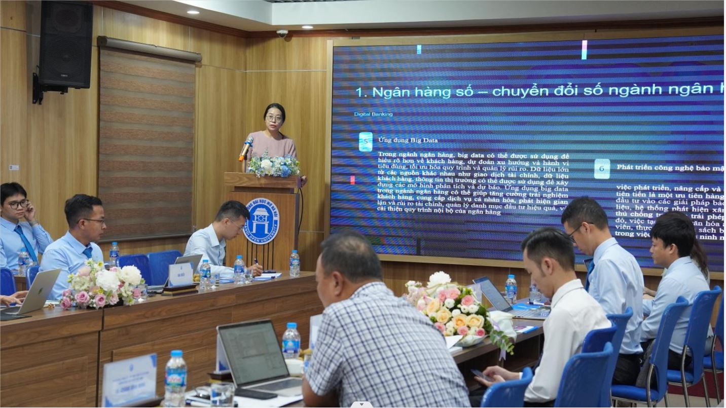 - TS. Đặng Hương Giang, Trường ĐH Kinh tế kỹ thuật công nghiệp với tham luận “Ứng dụng AI trong quản trị rủi ro tại các ngân hàng thương mại Việt Nam trong bối cảnh chuyển đổi số”. Trong đó nêu bật vấn đề các ứng dụng hiện nay trong ngành ngân hàng. AI trong bảo mật, AI trong quản trị rủi ro tín dụng, AI phân tích rủi ro và phòng chống gian lận, AI trong tự động hóa quy trình nghiệp vụ. Đồng thời cũng đưa ra những cơ hội và thách thức trong vấn đề ứng dụng AI trong quản trị rủi ro tại các ngân hàng thương mại Việt Nam.